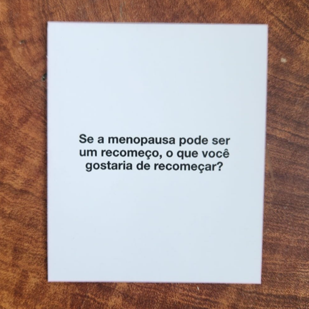 sociais, tendo a menopausa como tema central. É uma oportunidade de reflexão e autoconhecimento, mas também pode ser usado para trocar experiências e quebrar tabus em grupo.